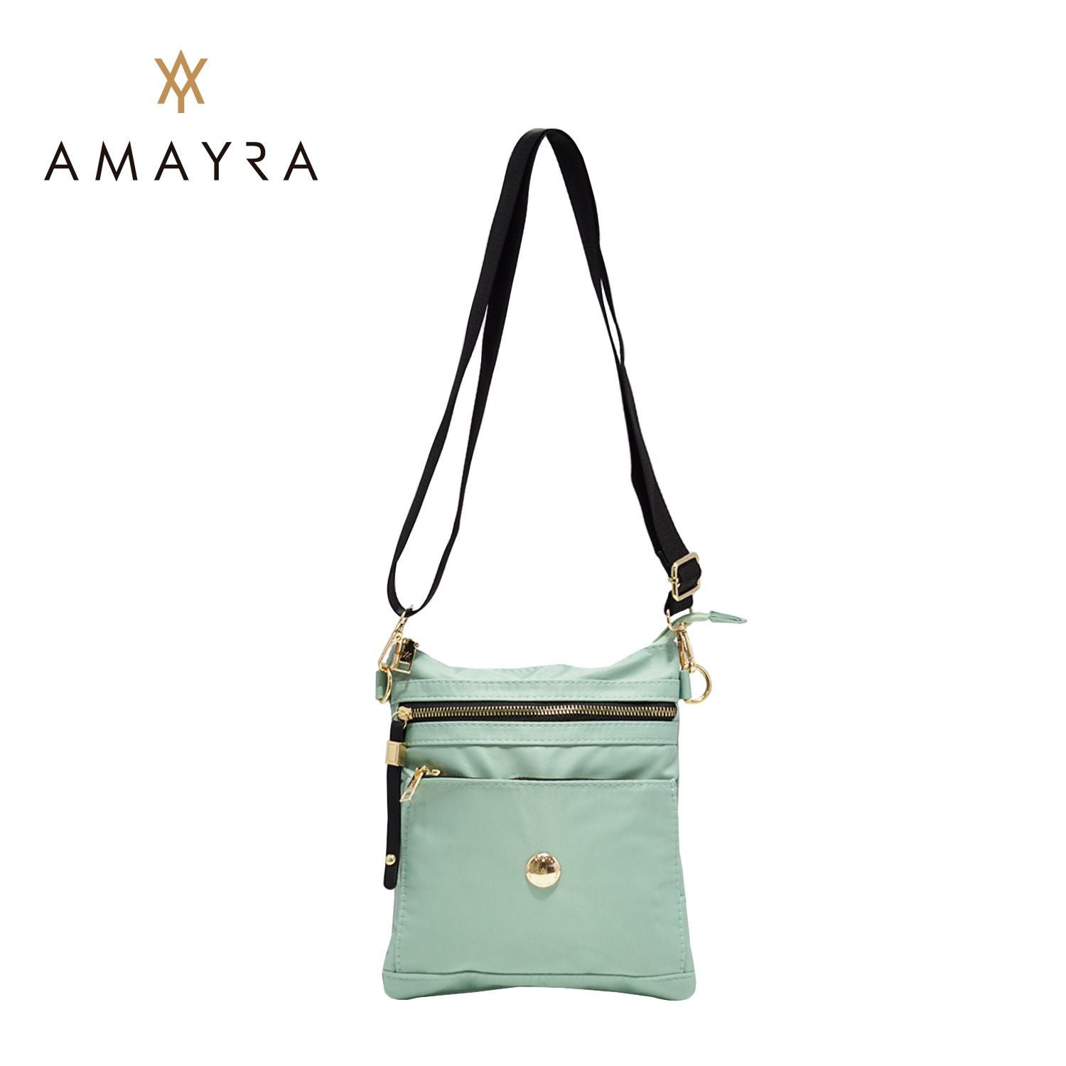 Bandolera con un compartimento principal con cierre, dos bolsillos delanteros con cierre, un bolsillo trasero con cierre y un bolsillo interior. Correa desmontable.
