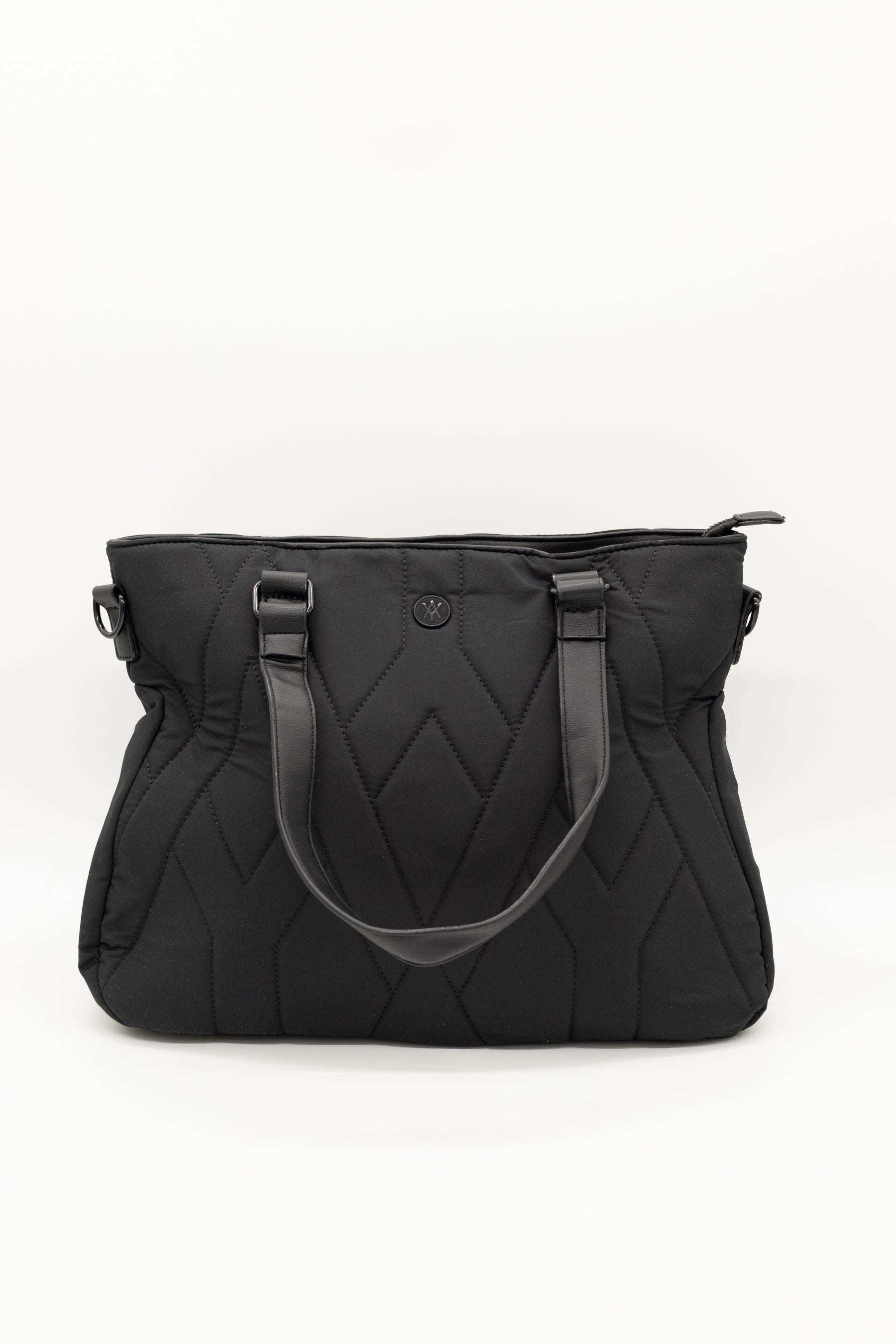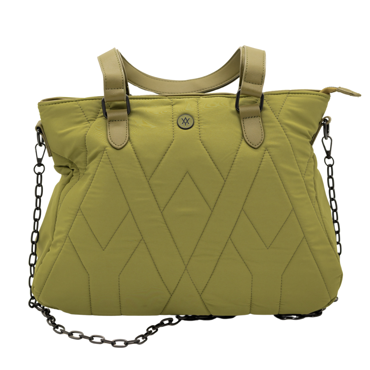 Cartera con un compartimento principal con cierre y bolsillo trasero con cierre. Destaca por su diseño acolchado moderno y liviano. Su textura acolchada en patrón geométrico y herrajes en negro mate le dan un toque urbano y contemporáneo. Perfecta para el día a día, trabajo o salidas casuales.