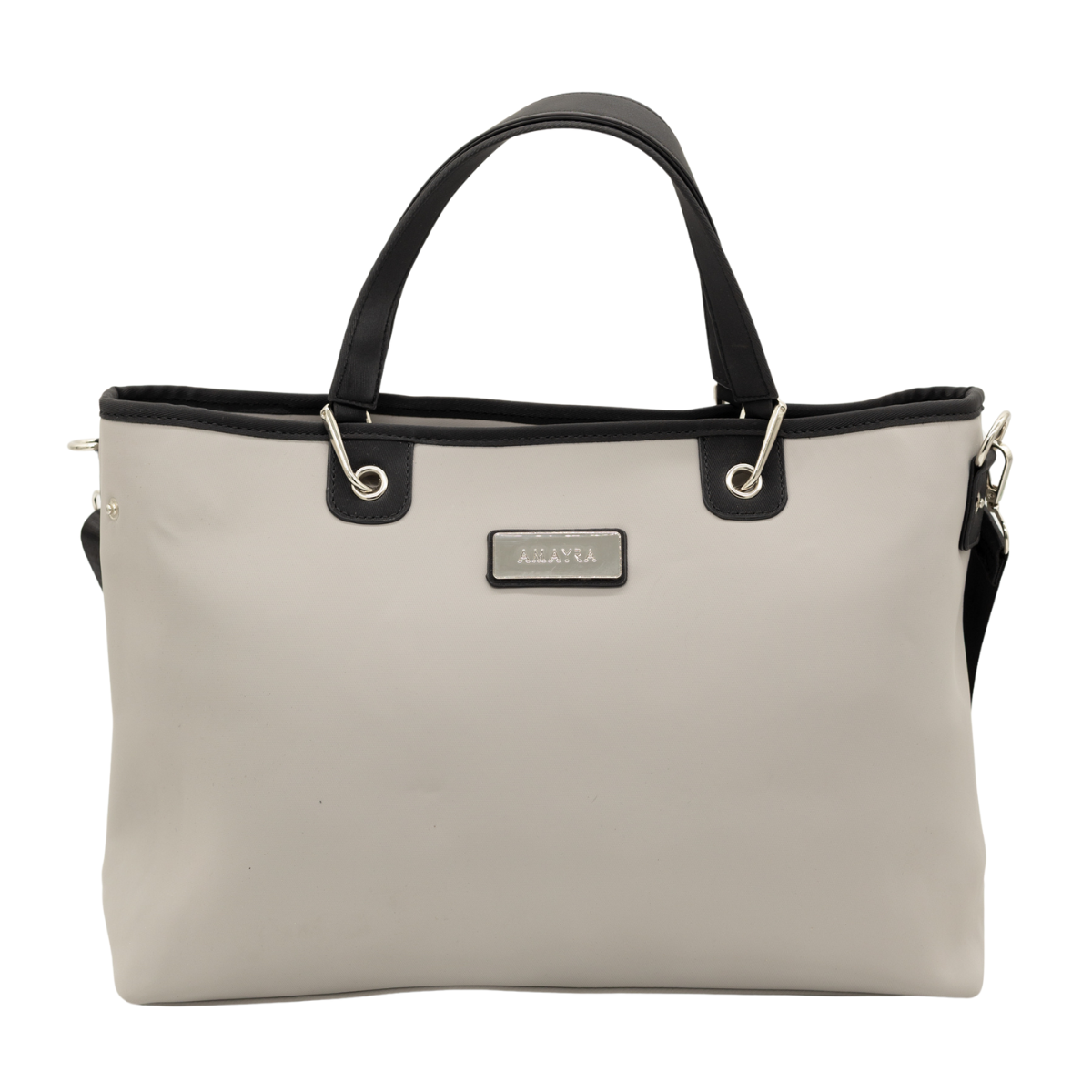 Cartera con un compartimento principal con cierre, bolsillo trasero externo con cierre y bolsillos interiores. Combina elegancia y funcionalidad en un diseño estructurado con líneas limpias. Su contraste de colores y herrajes metálicos aportan un toque sofisticado ideal para el trabajo o uso diario.