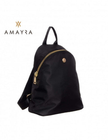 Mochila tamaño M con un compartimento principal con cierre, tres bolsillos interiores pequeños y un bolsillo con cierre en la parte trasera. Medidas: 33 alto x 30 cm ancho x 11 cm prof. Composición: Poliéster (100% PU).