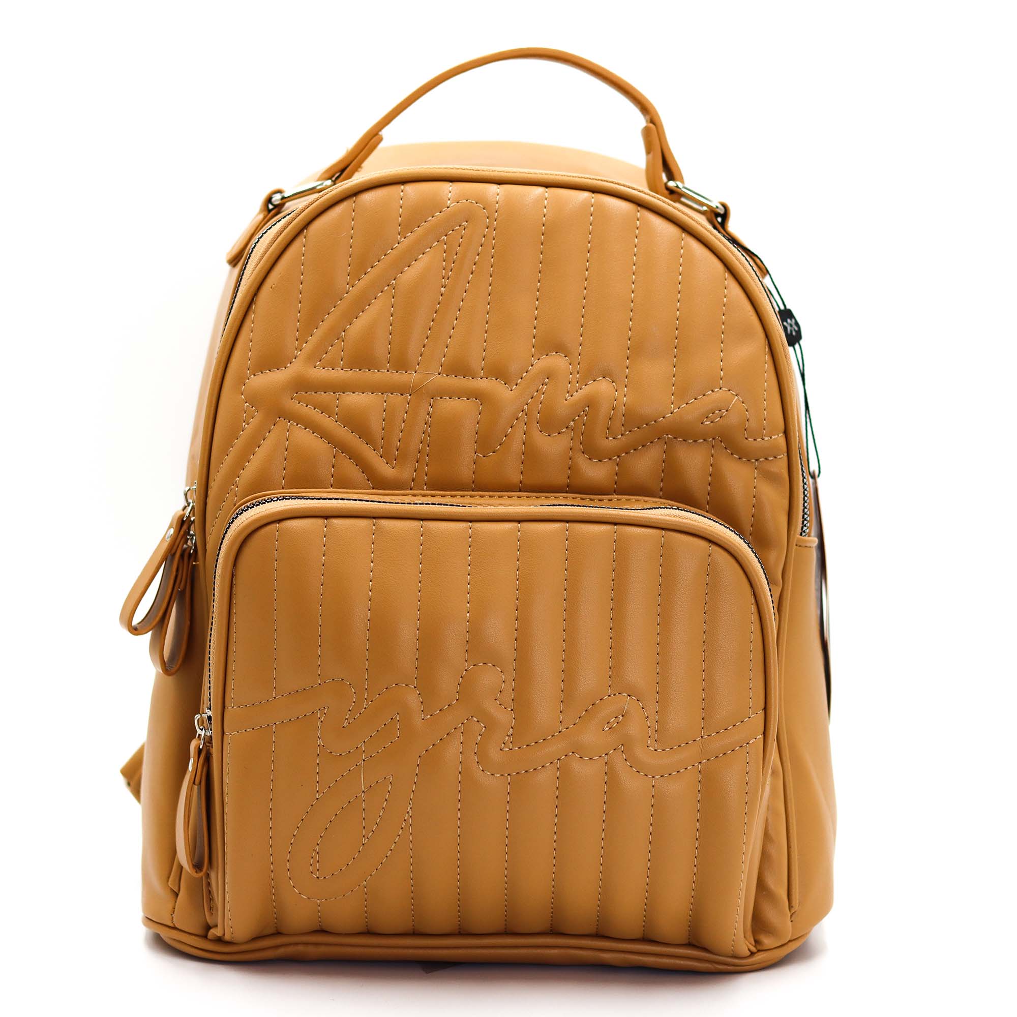 Mochila tamaño M con un compartimento principal con cierre en la parte trasera, dos bolsillos interiores, un bolsillo con cierre en la parte delantera y dos bolsillos laterales. Mochila antirobo. Correas ajustables, se puede usar como mochila o cartera.